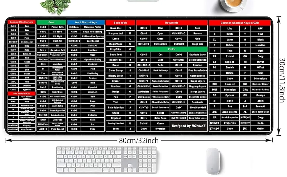Keyboard Shortcut Mouse Pad, Office/Excel/Word/PPT Shortcuts Cheat Sheet Mat, Quick Key Super Large Anti-Slip Keyboard Pad wit Clear Shortcut Key