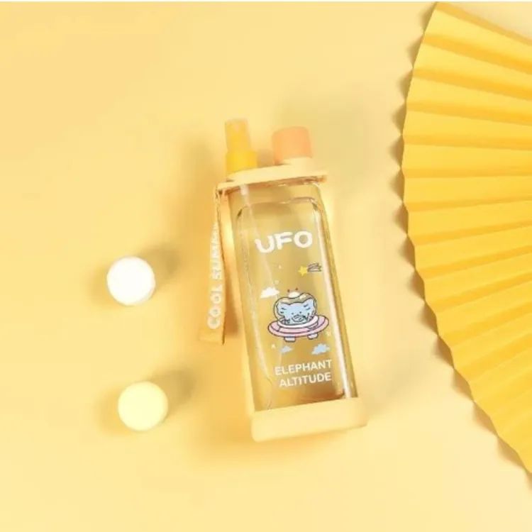 Square Shaped Double Layer Plastic Straw Water Bottle With Scale Markings Random Colours